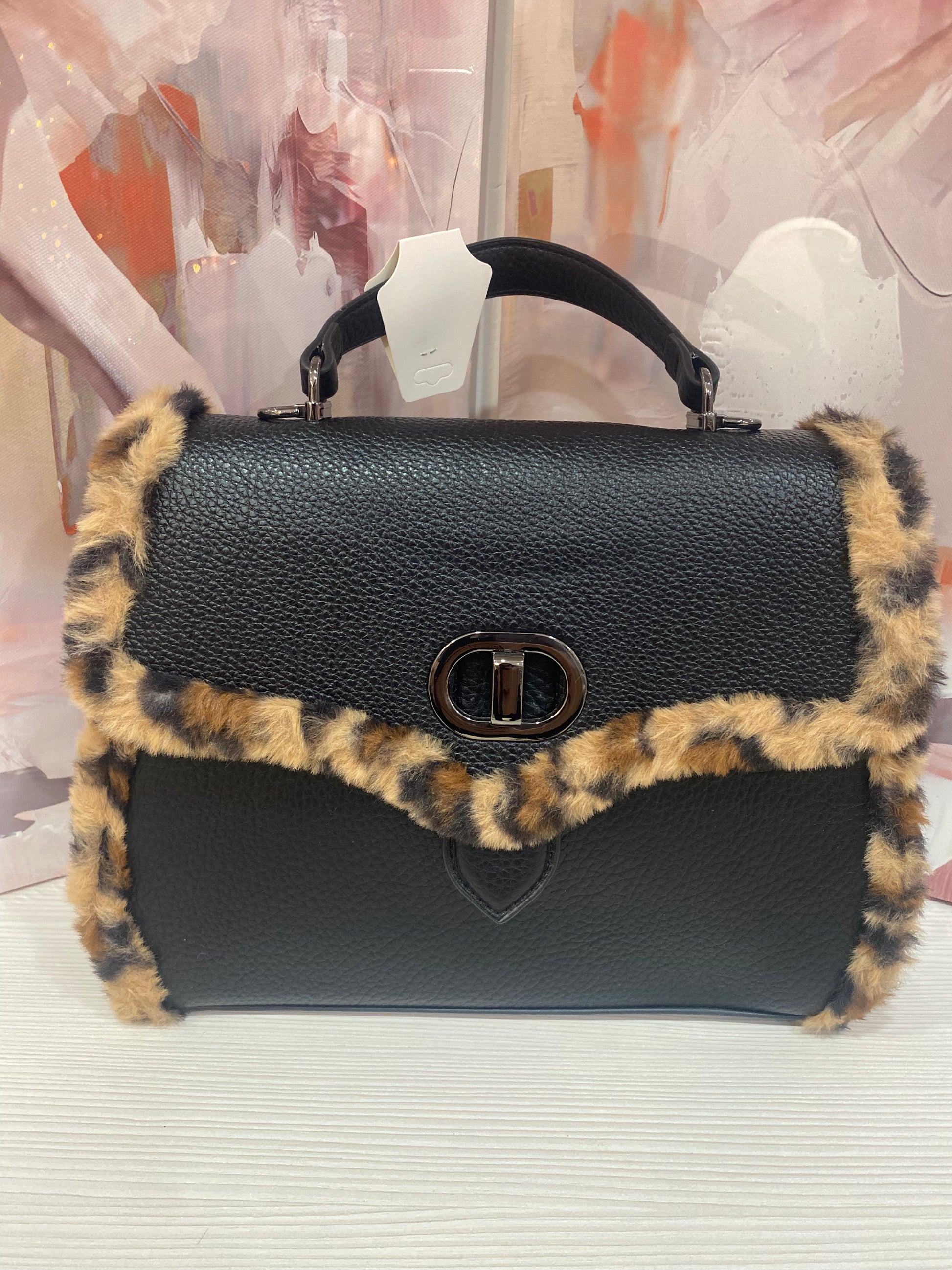 Tocco Animalier: Il bordo della borsa e la patta sono rifiniti con un inserto in ecopelliccia leopardata (o maculata) morbida, che aggiunge un elemento di tendenza e personalità.