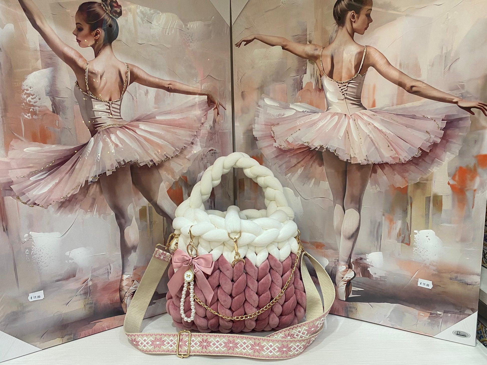 🖤 Borsa "Marshmallow" Bicolor Rosa fairy e bianca - Lusso Soffice a Trecce 💚