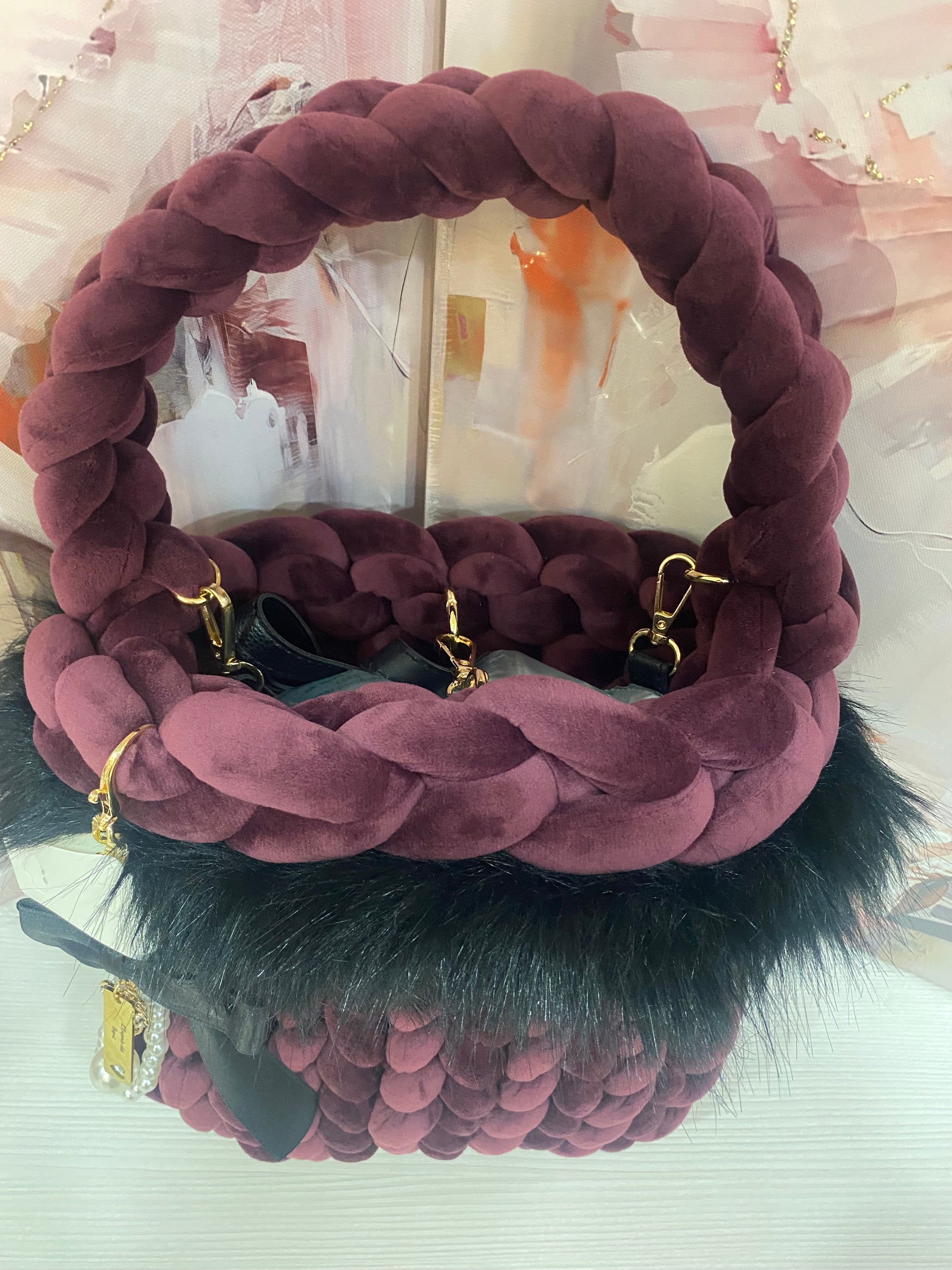 Tocco Invernale Chic: Inserti in pelliccia ecologica nera ai lati del manico aggiungono un tocco di lusso e calore, creando un contrasto visivo affascinante.