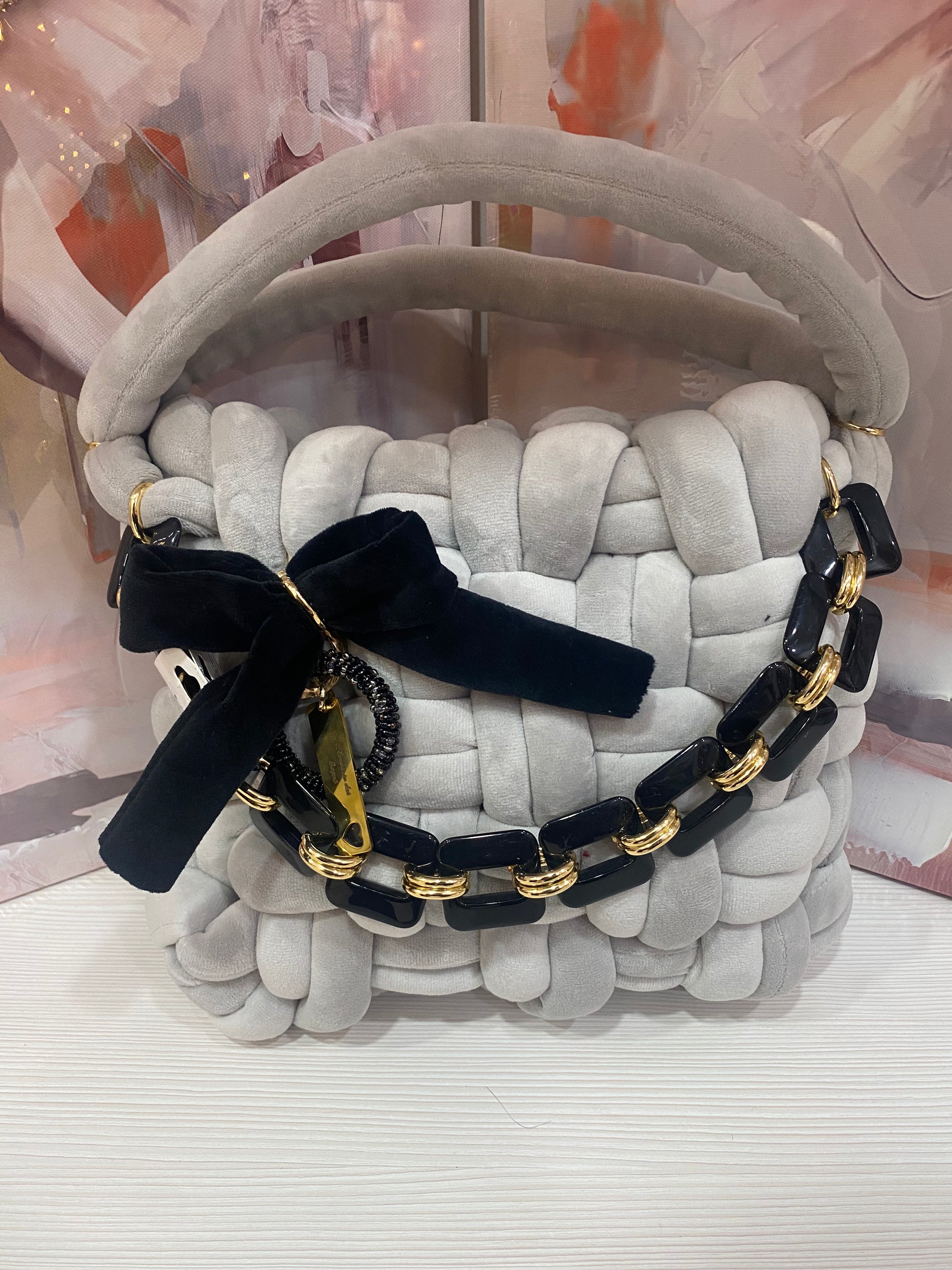 Fatti notare con classe! Acquista ora la tua borsa "Marshmallow" in grigio, aggiungi un tocco di regalità al tuo stile.