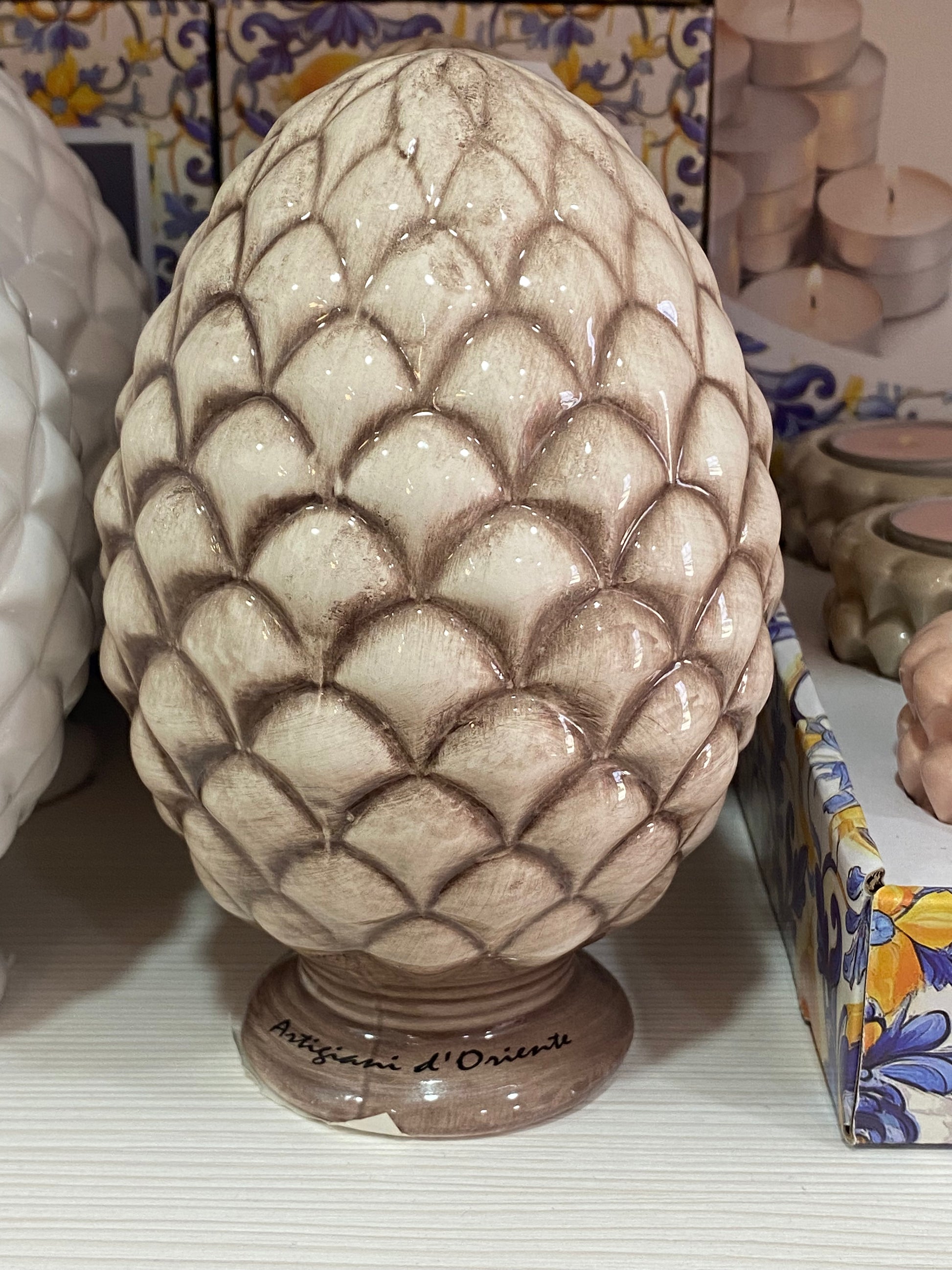 Porta un pezzo della ricca tradizione siciliana nella tua casa! La pigna è un oggetto decorativo iconico, da secoli considerato un potente simbolo di abbondanza, fertilità e buon augurio.
