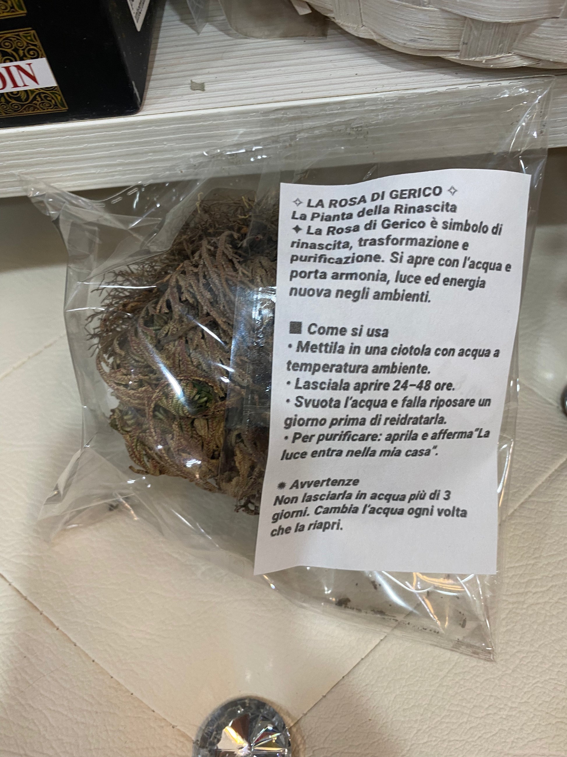 La Rosa di Gerico è un oggetto botanico unico e leggendario, simbolo universale di rinascita, trasformazione e purificazione. Questa pianta del deserto ha la straordinaria capacità di sopravvivere in stato di completa disidratazione per lunghi periodi, per poi "risvegliarsi" e aprirsi non appena entra in contatto con l'acqua.