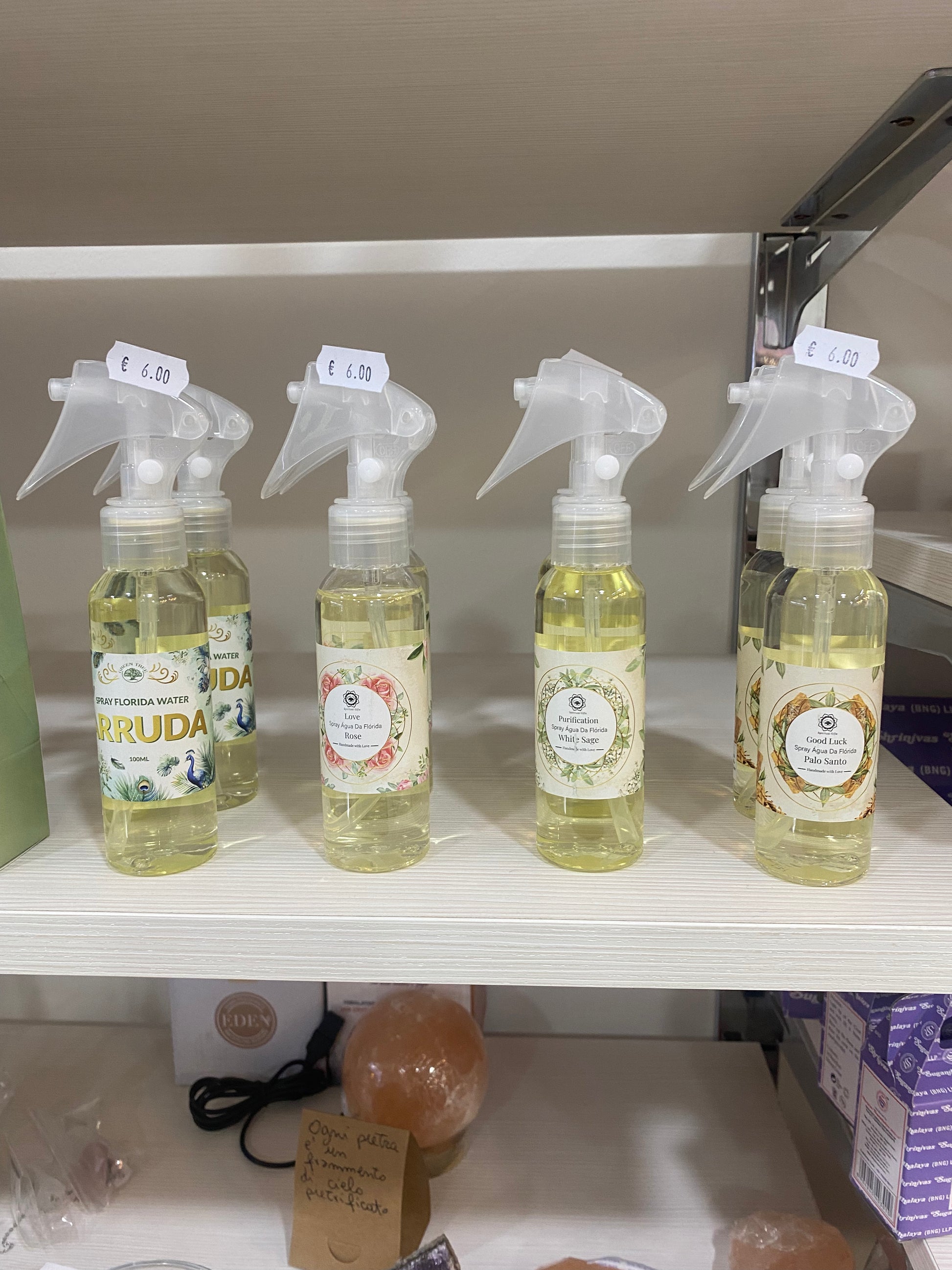 Trasforma l'energia dei tuoi spazi con la nostra collezione di Spray Florida Water. Realizzati artigianalmente, questi spray combinano la tradizione sciamanica con fragranze delicate per favorire il benessere mentale e spirituale. Ideali per la purificazione di ambienti, cristalli o per rinfrescare l'aura dopo una giornata intensa.