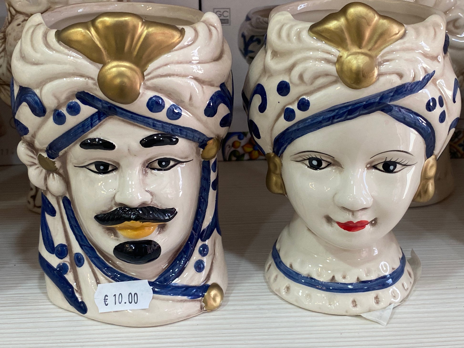 TESTA DI MORO COPPIA UOMO - DONNA in Ceramica Siciliana - Decoro Tradizionale