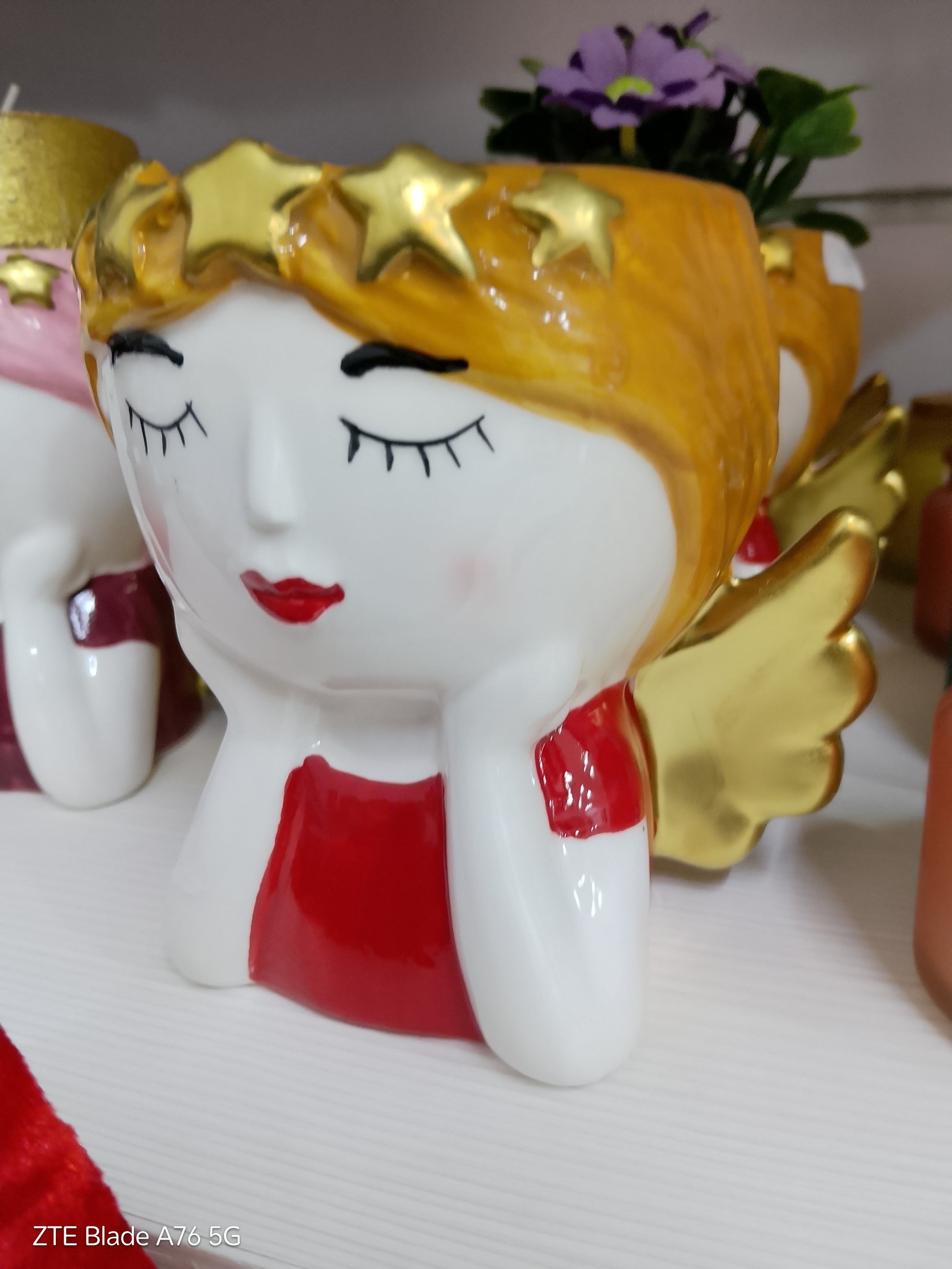 Titolo: 💖 Dolcezza Celeste! Vaso Decorativo in Ceramica "Angelo Sognante" con Ali Dorate